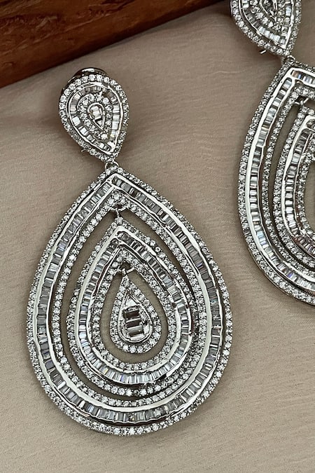 White Crystals Designer Teardrop Earrings