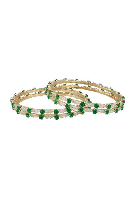 Sleek green stone embellishment on bangles, Set of 4 bangles designed for stacking