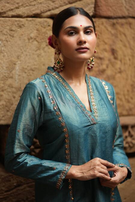 Side slits on kurta, Attached lining, Note:The fabric is silk blend and not pure silk.
