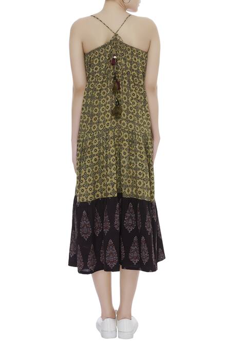 Showcasing a gorgeous ajrakh print, beige-hued silhouette to add to your weekend rotation closet. Beautified with captivating kutch embroidery, this tie-up breezy number will garner you a ton of compliments.