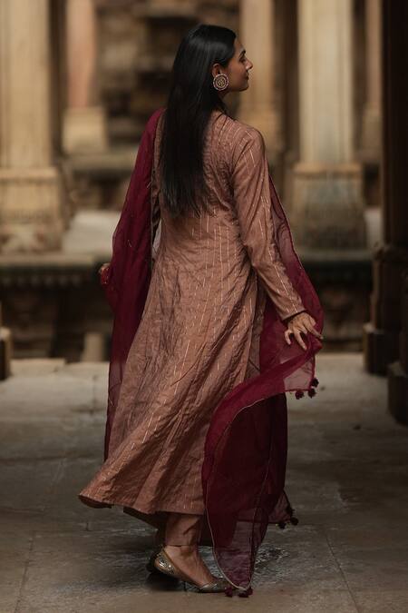 Buy_Sagaa By Vanita_Brown Anarkali  Silk Round With Dupatta _Online_at_Aza_Fashions
