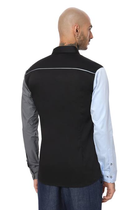 Concealed placket for a sleek look, Distinctive color block pattern, Full sleeves with buttoned cuffs