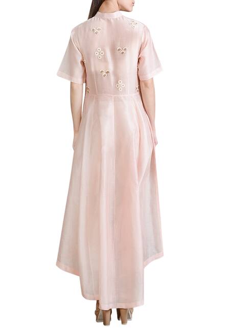 Buy_Sahil Kochhar_Pink Chanderi Embroidered Floral Mandarin Collar Asymmetrical Kurta _Online_at_Aza_Fashions