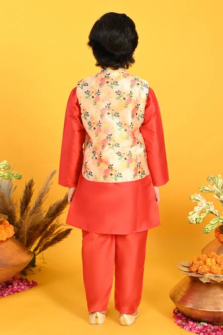 Buy_Saka Designs_Off White Cotton, Taffeta Floral Print Bundi And Kurta Set_Online_at_Aza_Fashions