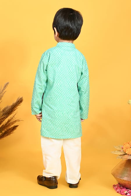 Blue Cotton, Taffeta Embroidery Linear Print Kurta Set