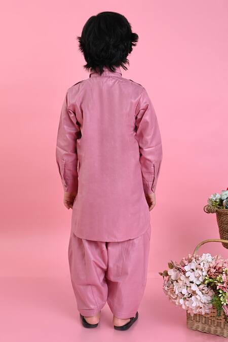 Peach Cotton Pathani Kurta And Salwar Set