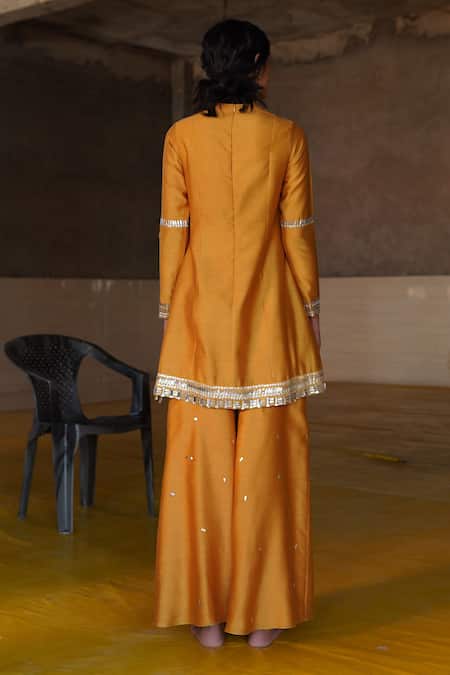 Buy_Saksham & Neharicka_Yellow Net, Chanderi Round Embroidered Palazzo Set _Online_at_Aza_Fashions