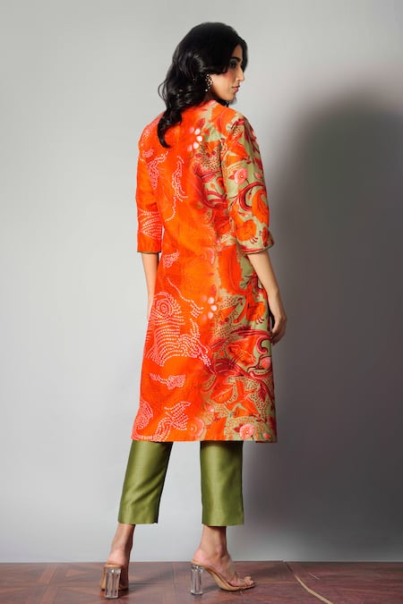 Red Chanderi Round Printed Kurta