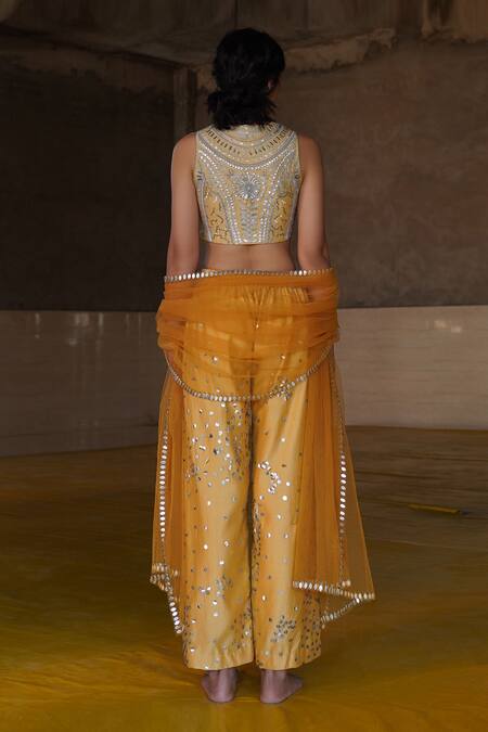 Buy_Saksham & Neharicka_Yellow Handwoven Chanderi Pant_at_Aza_Fashions