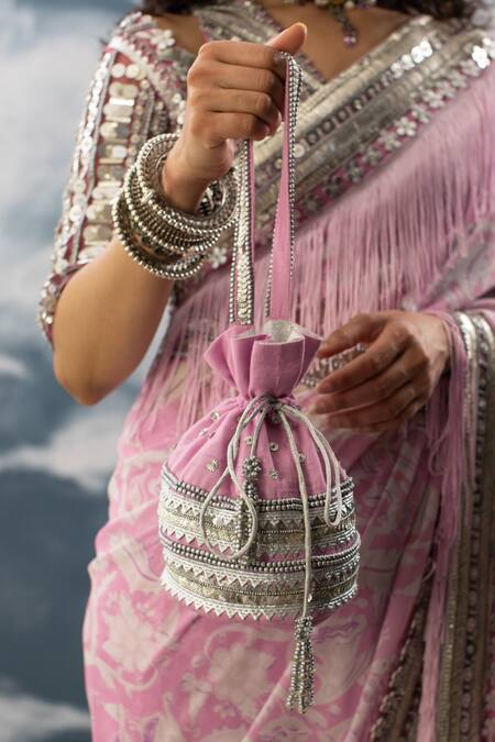 Pink Embroidery, Beads Khwahish Cotton Zari Potli