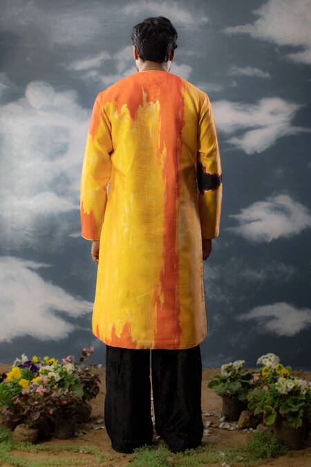 Ochre and tangerine kurta featuring a round neck and full sleeves