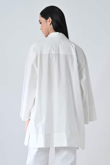 White Cotton Collared Break Stone Shirt