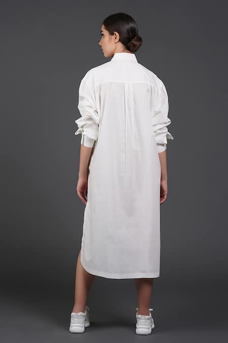 White Cotton Collared Dynamic Blue Shirt Dress