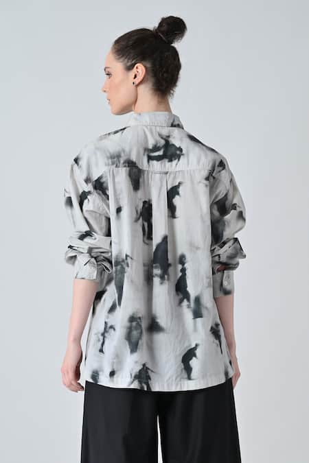 Gray Cotton Collared Grey Tie And Dye Shirt