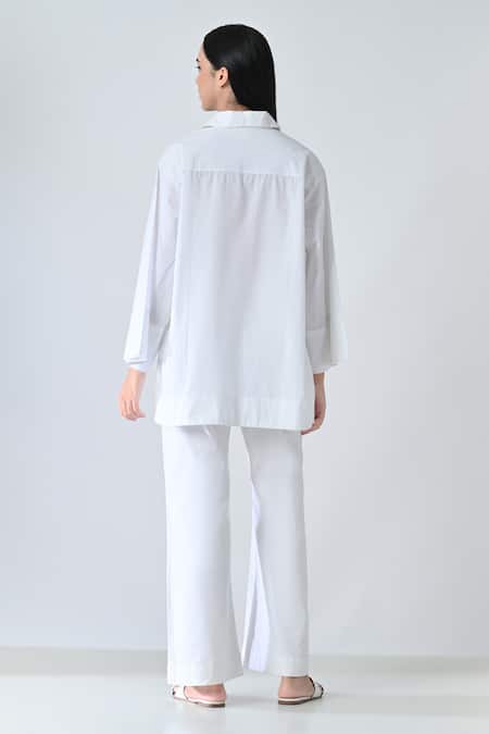 White Cotton Collared Leaf Drift Shirt