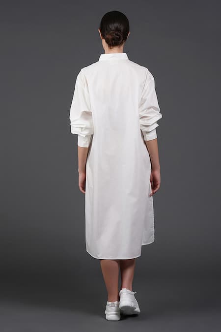 White Cotton Collared Spiky Style Shirt Dress