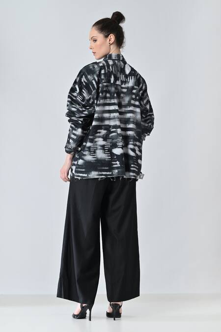 Black striped patterned shirt crafted from cotton