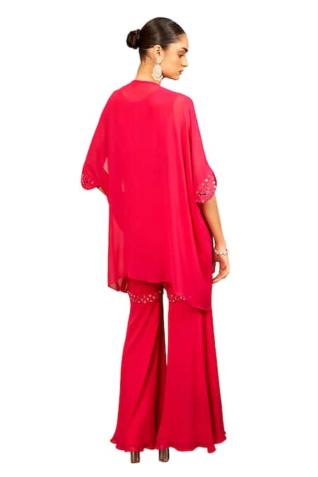 Pink Georgette Mirrors, Embroidery V-neck Assia Kaftan And Sharara Set