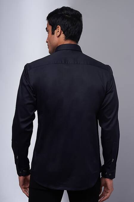 Black shirt featuring full sleeves and collared neck design