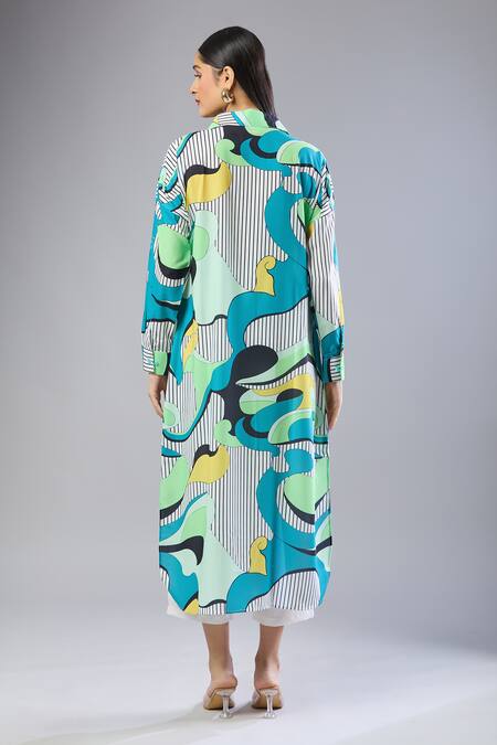 Buy_Samyukta Singhania_Multi Color Collared Green Abstract Print Midi Dress