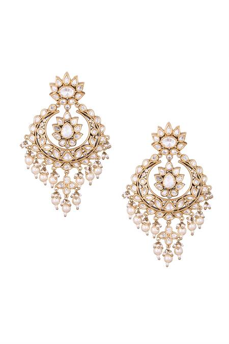 Buy_Nazaakat By Samara Singh_White Stones, Pearls And Gold Dangler Earrings _Online_at_Aza_Fashions
