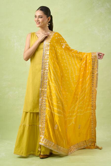 Yellow embroidered Bandhani dupatta featuring Gotta Patti detailing