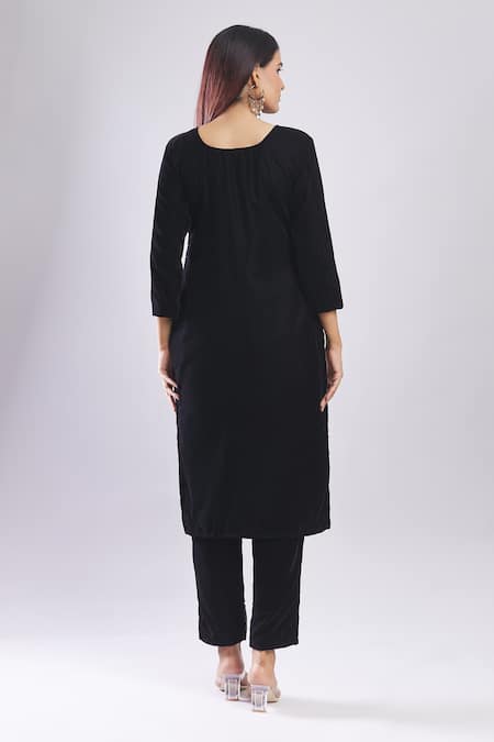 Buy_Samyukta Singhania_Black Velvet Embroidery Round Neck Kurta Set With Dupatta