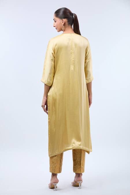 Buy_Samyukta Singhania_Cream Brocade Lace Round Neck Work Straight Kurta Set