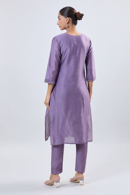 Purple Embroidery Round Neck Kurta Set