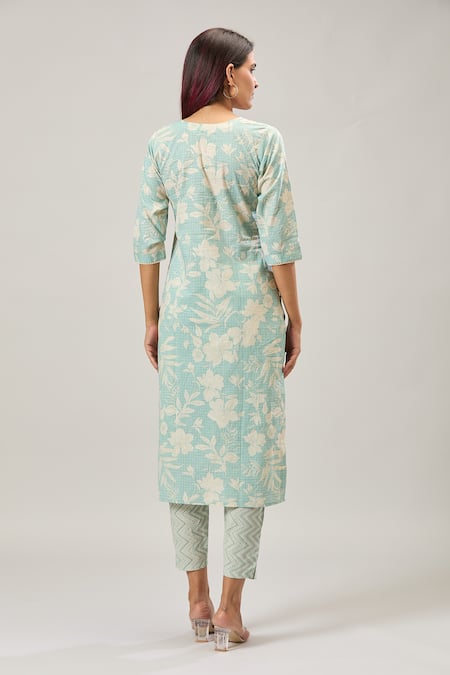 Buy_Naintara Bajaj_Green Cotton Embroidery Round Neck Printed Kurta Set _Online_at_Aza_Fashions