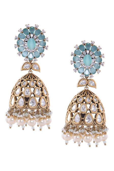Floral design with sparkling stones, Pearl embellishments at the bottom, Brass base with intricate cutwork