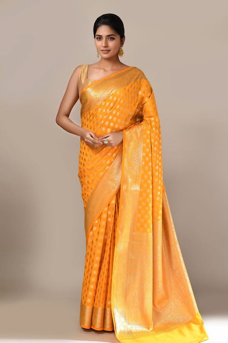 Buy_Naintara Bajaj_Yellow Banarasi Butti Saree With Running Blouse _Online_at_Aza_Fashions