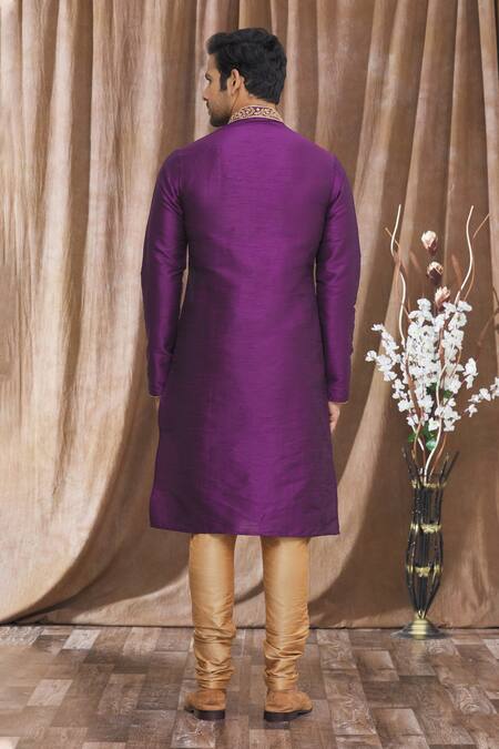 Purple Silk Embroidery, Mirrors Banarasi Thread Kurta