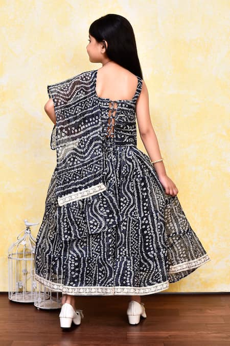 Buy_Petite Pomme_Black Cotton, Kota Doria Embroidery, Lace Bandhani Print Lehenga Set _at_Aza_Fashions