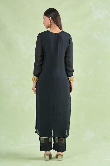 Black Organza Beads, Sequins, Lace Round Neck Embellished Kurta Set With Dupatta