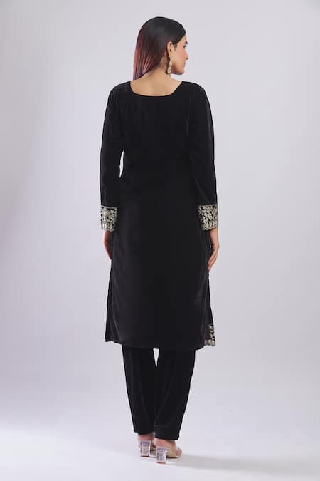 Black Velvet Embroidery V-neck Kurta Set With Dupatta