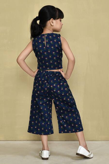 Buy_Petite Pomme_Blue Cotton Embroidery Block Print Top With Pant_Online_at_Aza_Fashions
