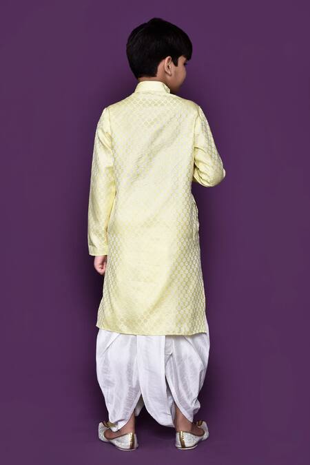 Buy_Petite Pomme_Yellow Brocade, Silk Embroidery Woven Pastel Kurta Dhoti Pant Set_at_Aza_Fashions