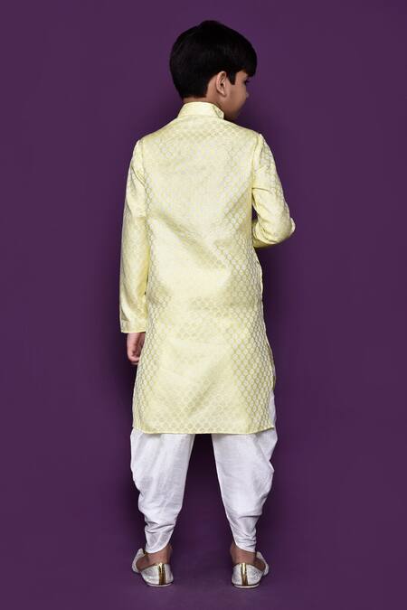 Buy_Petite Pomme_Yellow Brocade, Silk Embroidery Woven Pastel Kurta Patiala Pant Set_Online_at_Aza_Fashions
