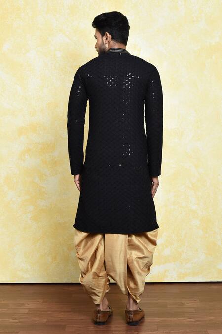 Buy_Arihant Rai Sinha_Black Silk Sequins Checkered Embroidered Kurta With Dhoti Pant_Online_at_Aza_Fashions