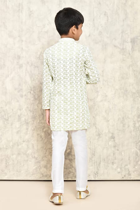 Shop_Petite Pomme_Green Cotton Embroidery Chikankari Kurta _at_Aza_Fashions