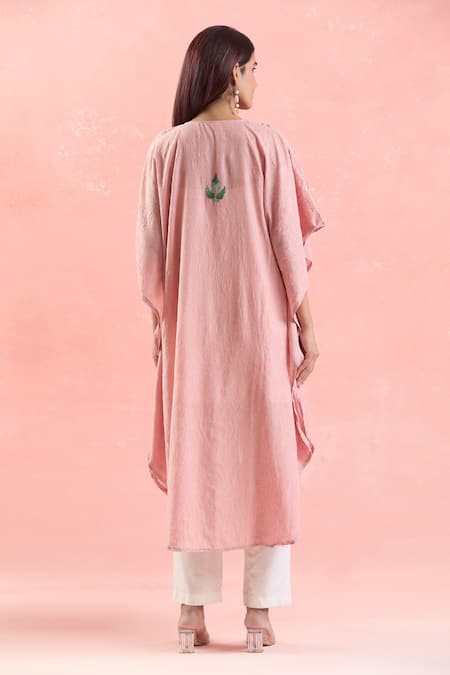 Pink Cotton Embroidery V-neck Resham Kaftan