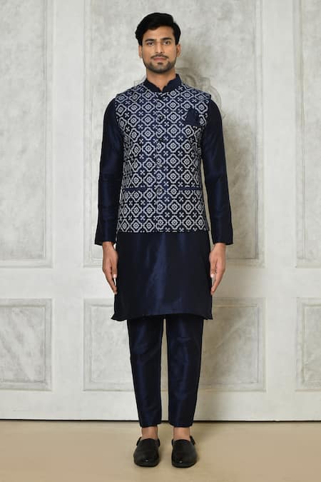 Buy_Arihant Rai Sinha_Blue Cotton, Silk Embroidery Geometric Print Kurta Set