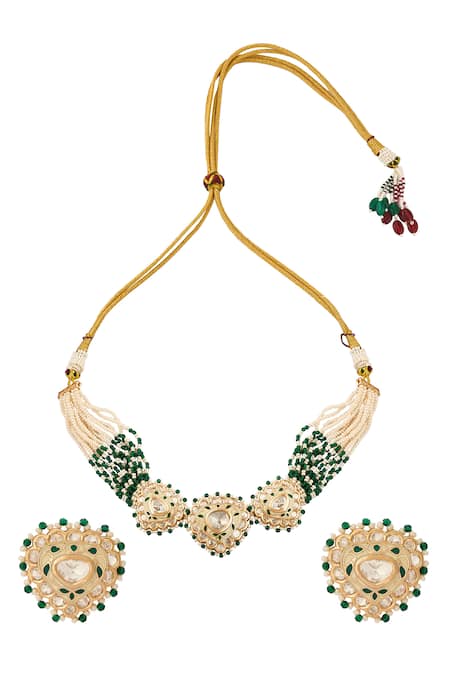 Buy_Nazaakat By Samara Singh_Cream Beads Creme And Green Brass Jewellery Set _Online_at_Aza_Fashions