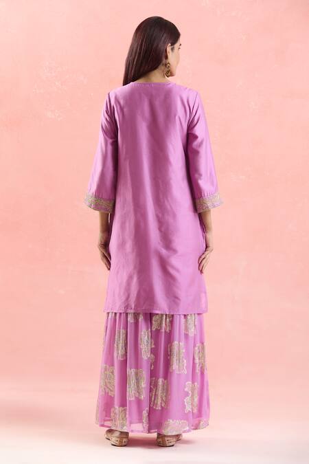 Pink Chanderi Silk, Georgette, Organza Embroidery, Zari, Gota Dori Kurta Set