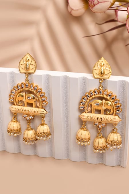 Buy_Nazaakat By Samara Singh_Beige Stones Elephant Motif Carved Earrings _Online_at_Aza_Fashions