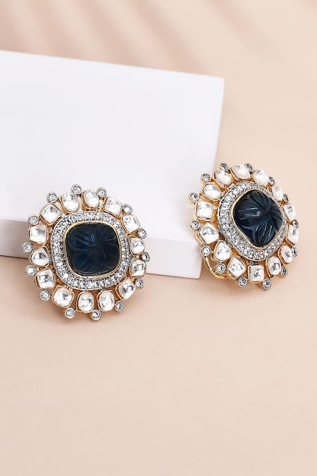 Nazaakat By Samara Singh_Blue Diamonds, Stones Embellished Stud Earrings _Online_at_Aza_Fashions