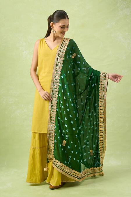 Buy_Samyukta Singhania_Green Embroidered Bandhani Dupatta With Gotta Patti_Online_at_Aza_Fashions
