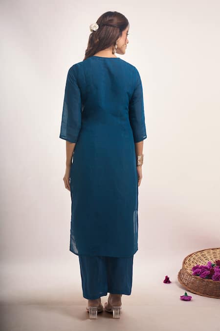 Buy_Samyukta Singhania_Teal Chanderi, Shantoon Embroidery, Beads, Sequins, Lace Round Mul Kurta Set _Online_at_Aza_Fashions