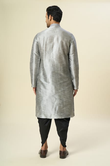 Light grey kurta featuring full sleeves and embroidered placket. Paired with black patiala pants for a complete look.